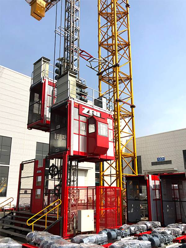Algoritmos de programación y optimización del tráfico: el Intelligent Construction Hoist employs AI-based or rule-based traffic management algorithms to optimize cage operations during high-demand periods. These algorithms analyze cage location, destination floors, load weight, operational priorities, and floor demand to determine the most efficient lift sequence. When multiple cages are active, the system schedules each movement to avoid congestion, minimize waiting times, and maintain safe vertical separation. The traffic optimization logic can integrate with site management software or Building Information Modeling (BIM) systems to coordinate cage scheduling with other construction activities, material handling, and personnel movement. Environmental conditions, such as high winds or temperature extremes, are factored into the scheduling logic, enabling the system to adjust lift sequences or speeds proactively. By optimizing traffic flow intelligently, the hoist maximizes productivity while reducing risks associated with simultaneous lift operations.